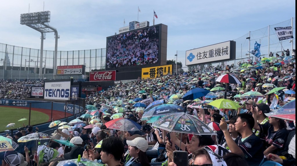 The next morning we woke up to get to the other side of the city in order to attend a baseball game. I had gotten this idea from a travel content creator on Youtube a while back and thought it may be interesting to experience the new environment. Needless to say, the energy did not disappoint. We were there to cheer on the Tokyo Swallows.