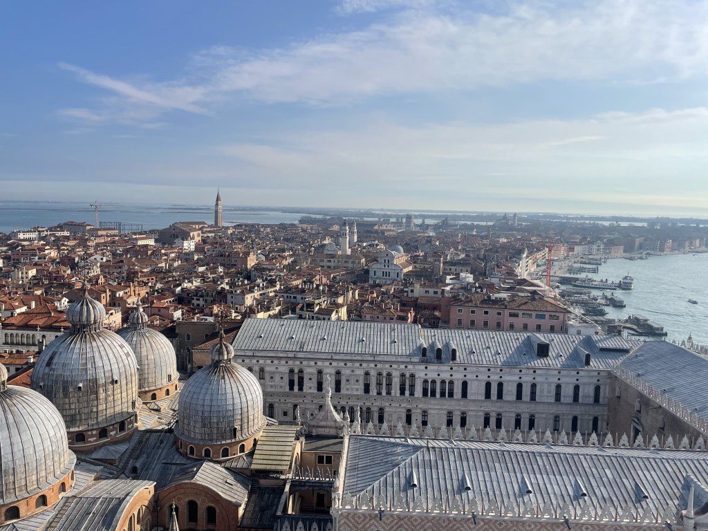 One way to get a true scope of Venice is to ride the elevator to the top of St Mark’s Campanile. The view from the top allows you to truly visualize the intricacy of the waterways that act as roads around the city. It looks as if there is no specific pattern that the canals follow but the locals just simply know how to navigate. In the middle, there’s a giant “S” shaped by the main canal that runs through the city. On the other side, you can see how the canals branch out into the Adriatic Sea. When looking at this place from an aerial view, it’s truly impressive how the Venetians have turned these waterways into a transportation system.