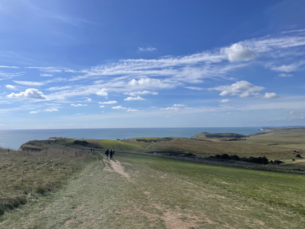 The initial climb up the cliff is a pretty difficult start to the trail as it’s rather steep. Once you reach the top there is a good stretch where it’s flat and provides great views of the town of Eastbourne.